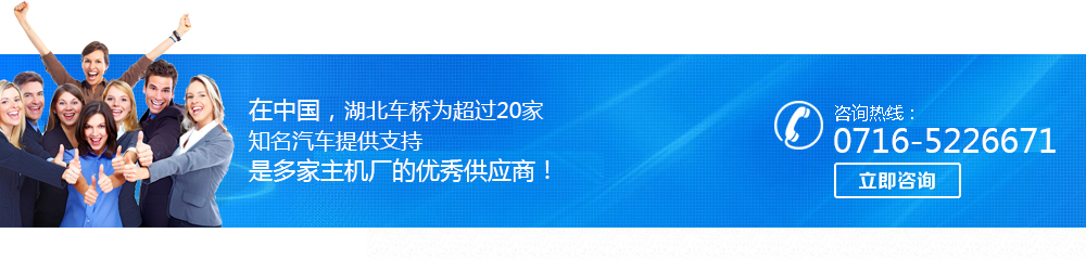 湖北車橋與江淮重卡、輕卡、客車、底盤、專用車都是18年來的前后橋總成主供應商之一,江淮公司對湖北車橋前后橋總成的新產品開發周期短、速比齊全、噪音低、交付及時、售后服務到位給予了高度評價,年供貨量達到1...